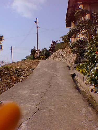 ちょっと、急傾斜ですが、みかん山へ登っていく坂道です。